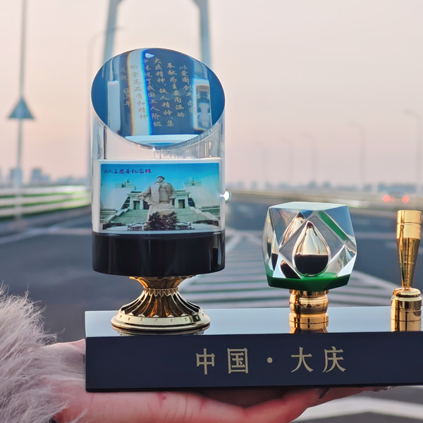 【简介】这款一滴油以笔台为载体,融入了多个极具意义的元素。笔台的设计精巧而实用,为书写与创作提供了便利的平台。其内镶嵌着铁人雕像照片,展现出了石油工人坚韧不拔的意志和大无畏的精神。铁人精神激励着一代又一代的大庆石油人,在困难与挑战面前永不退缩。而第 一口油井的呈现,仿佛将人们的记忆拉回到了大庆油田艰苦创业的起点,那是大庆石油工业的开端,饱含着先辈们的汗水与希望。z为关键的是那一滴原油,与铁人雕像、第 一口油井相互映衬,将大庆油田的历史、精神与资源完美融合。