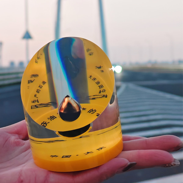 【简介】这款一滴油的主体是一个精致的烛台,像是一个承载历史与记忆的载体。而那一滴原油,是整个设计的灵魂所在,被巧妙地安置在烛台之中,油滴的形状饱满且圆润,在光线的映照下,散发着石油独有的光泽,象征着大庆石油在工业、生活等诸多领域中所发挥的关键作用。当烛台与一滴原油结合在一起,便形成了一种独特的视觉冲击。这款工艺品,无论是作为一件家居装饰品,还是一件具有纪念意义的物品,都能让人们感受到石油的独特魅力与价值。