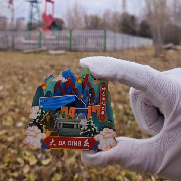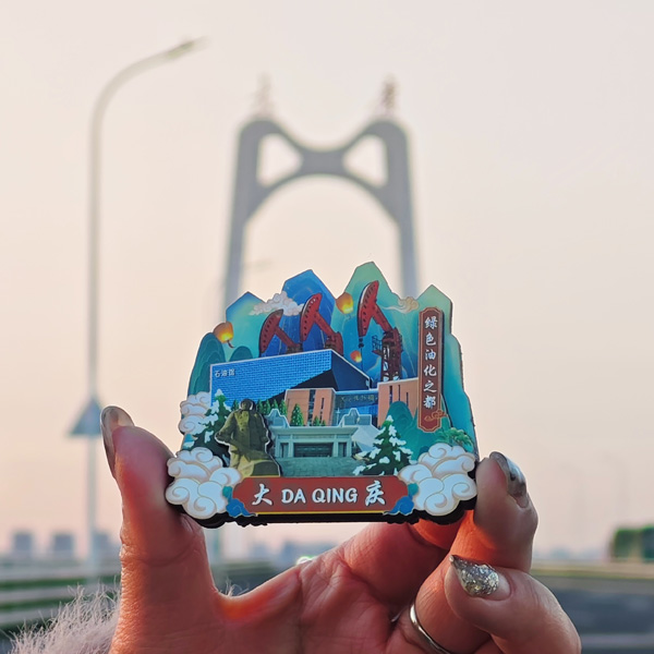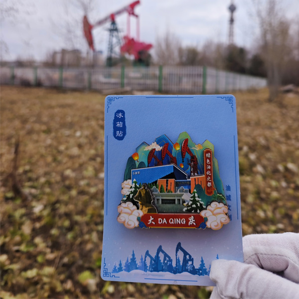 【简介】这款冰箱贴蕴含了丰富的大庆元素。王进喜纪念馆被巧妙地融入其中,王进喜代表着大庆石油人艰苦奋斗、无私奉献的精神,让人们在看到冰箱贴的瞬间,就能忆起“铁人”的豪迈誓言与拼搏故事;大庆博物馆则为冰箱贴增添了深厚的历史底蕴,它仿佛浓缩了大庆这片土地的发展脉络,从远古的地质变迁到近现代的石油开发,那些沉淀的历史通过这小小的冰箱贴展现出独特的魅力;石油馆凸显了大庆石油产业的核心地位,体现了石油对大庆经济发展和城市建设的关键意义,也展示了大庆在石油领域的辉煌成就;而大庆电视塔更是让这款冰箱贴别具一格,电视塔那高耸的身姿象征着大庆不断向上发展的活力,它既是城市的地标,也是大庆现代气息的体现。