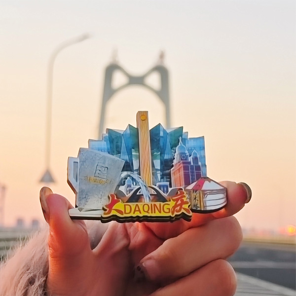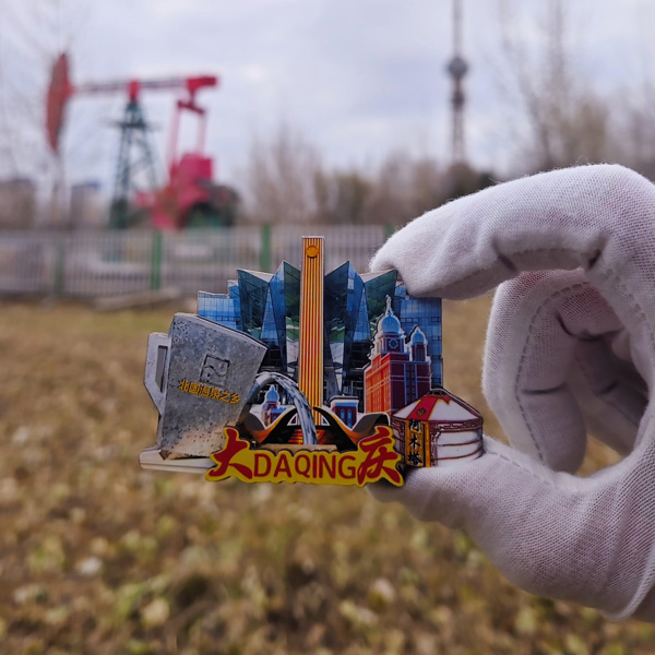 【简介】这款冰箱贴宛如一幅精美的大庆风情画卷。上面精心融入了北国温泉元素,那氤氲的热气似乎正从冰箱贴上袅袅升起,让人仿佛能感受到在北国温泉中放松身心的惬意;蒙古风情旅游景区阿木塔的元素为冰箱贴增添了独特的民族韵味,那富有特色的蒙古包展现出大庆多元文化的魅力;大庆地标建筑石油之光在冰箱贴上熠熠生辉,它象征着大庆这座石油之城的辉煌历史与荣耀;大庆科技馆则体现了大庆对科学探索的重视,从这里仿佛能看到大庆在科技领域不断探索、勇攀高峰的决心。