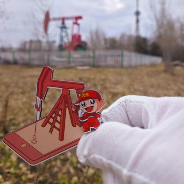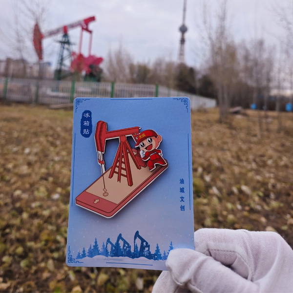 【简介】这款独特的大庆冰箱贴,将大庆的标志性元素展现得淋漓尽致。首先映入眼帘的是抽油机的卡通图案,每一处线条都勾勒出抽油机的独特结构,仿佛在诉说着大庆油田的辉煌历史,它是石油开采的象征,也是大庆这座石油之城的标志之一;石油工人的卡通图案更为冰箱贴增添了活力与灵魂,石油工人头戴安全帽,身着工作服,脸上洋溢着自信的笑容,卡通形象把石油工人的淳朴与勤劳生动地展现了出来。它不仅是一件装饰品,更是大庆石油文化的载体,让人时刻感受到大庆石油人的豪迈与大庆油田的独特魅力。
