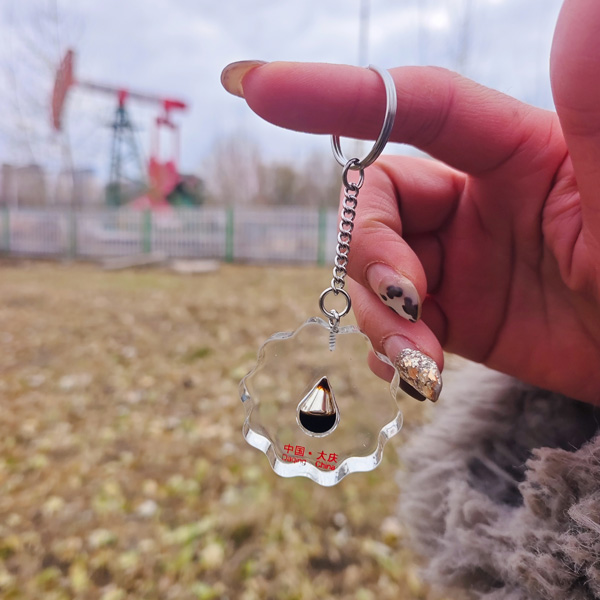 【简介】钥匙链整体设计精巧,将石油元素与日常物品相结合。石油花造型精致,花瓣栩栩如生,仿佛在阳光下闪耀着石油工业的光辉,它是对石油这一珍贵资源的艺术化呈现。而那一滴油,被巧妙地安置在石油花之中,色泽饱满且极具质感,似乎蕴含着无穷的能量。这滴油宛如石油的精华所在,虽微小却意义重大,它代表着石油产业背后无数的探索与辛勤的付出。无论是拿在手中把玩,还是挂在钥匙上,它都像是一个小小的石油文化使者,是兼具美观与纪念意义的独特物品。