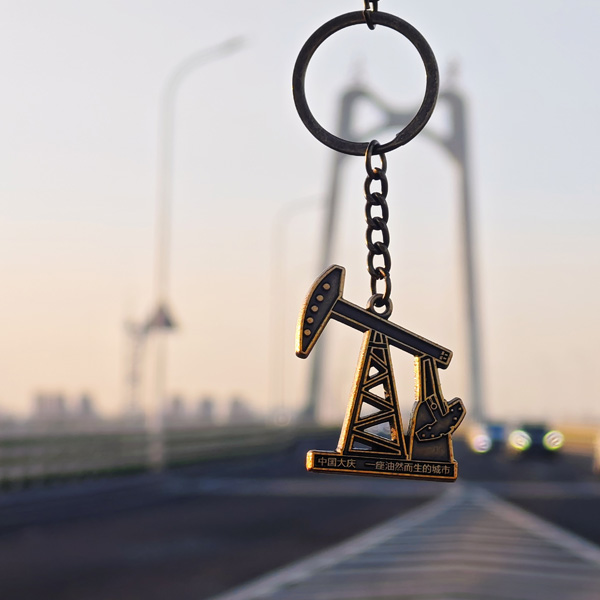【简介】该款钥匙链以抽油机为原型,精心打造出微缩模型。从高耸的支架到独特的驴头结构,每一处细节都被真实地还原出来,展现出抽油机在工作时的独特机械之美。它不仅仅是一个普通的钥匙链,更是大庆石油文化的载体,时刻提醒着人们大庆油田的奋斗历程和为国家石油事业做出的巨大贡献,让大庆精神在人们的日常生活中得以传承和延续。