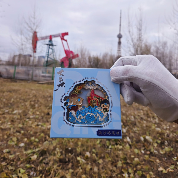 【简介】这款金属流沙冰箱贴,将大庆独特的元素巧妙融合,别具魅力。其中,吉祥物油油萌萌的形象憨态可掬,它们以可爱的姿态展现出大庆的活力与亲和力,传递着这座石油之城的热情与友好。而微缩的磕头机模型精致逼真,作为大庆石油开采的标志性象征,它见证了这座城市在石油工业领域的辉煌历程与伟大成就。金属流沙的设计更是匠心独运,当轻轻晃动冰箱贴,流沙闪烁飘动,如时光的长河中流淌着大庆的故事,石油在岁月里的涌动与变迁仿佛一一浮现。无论是作为家居装饰的小物件,还是送给亲朋好友的特色纪念品,它都承载着大庆的文化底蕴与精神内涵,铭记这座城市为国家能源事业所做出的卓越贡献。